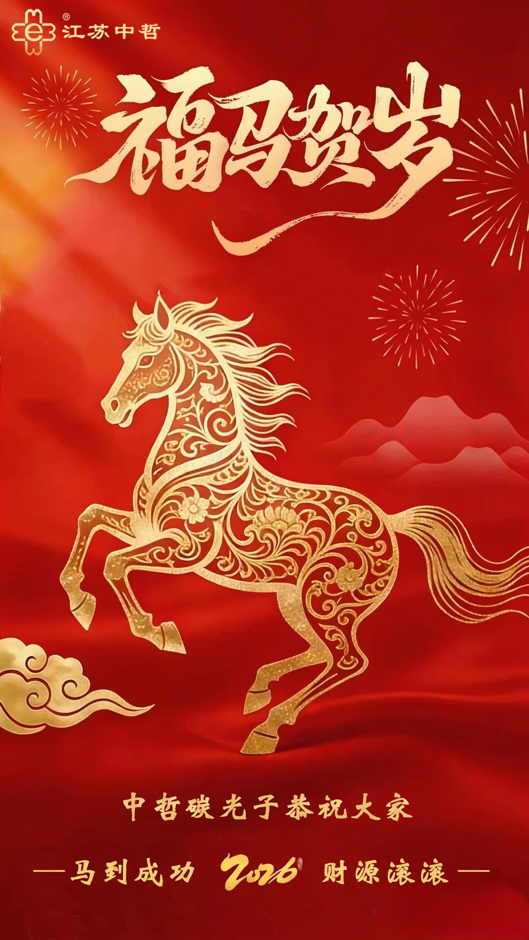 马踏春风启新程,万顺顺遂皆可期!江苏中哲碳光子全体员工恭祝大家:新春快乐!阖家安康!财源广进!马到成功!